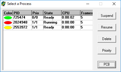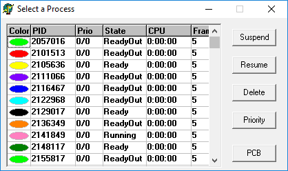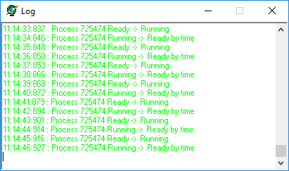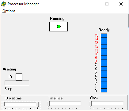 โปรแกรมนี้มีหน้าที่จำลองการทำงานของโปรเซส (Process) แสดง 1) Running 2) Ready และ 3) Waiting ใน
