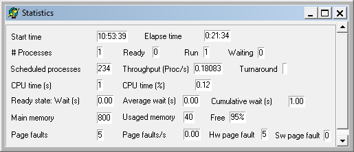 แล้ว unzip จะพบแฟ้ม sosim.exe และ sosim.ini เมื่อ run โปรแกรมก็จะใช้งานได้ทันที โดยไม่ต้อง install หลังเปิดโปรแกรมจะพบ 3 หน้าต่าง คือ 1) SOsim Console 2) Processor Manager และ 3) Memory Management ก่อนใช้งานควรเปิด หน้าต่างอีก 2 หน้าต่าง คือ Log และ Statistics ผ่าน Menu bar, Windows ใน SOsim console จากนั้นจะพบหน้าต่างทั้งหมด 5 หน้าต่าง